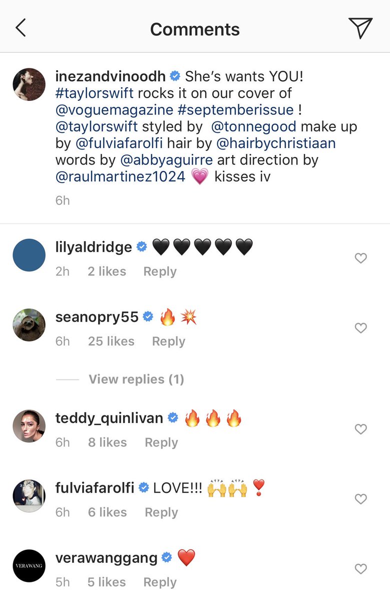 Taylor Swift News On Twitter Ig Comments On Instagram From Gigi Hadid Lily Aldridge Sean O Pry And More About Taylor S Vogue Photoshoot